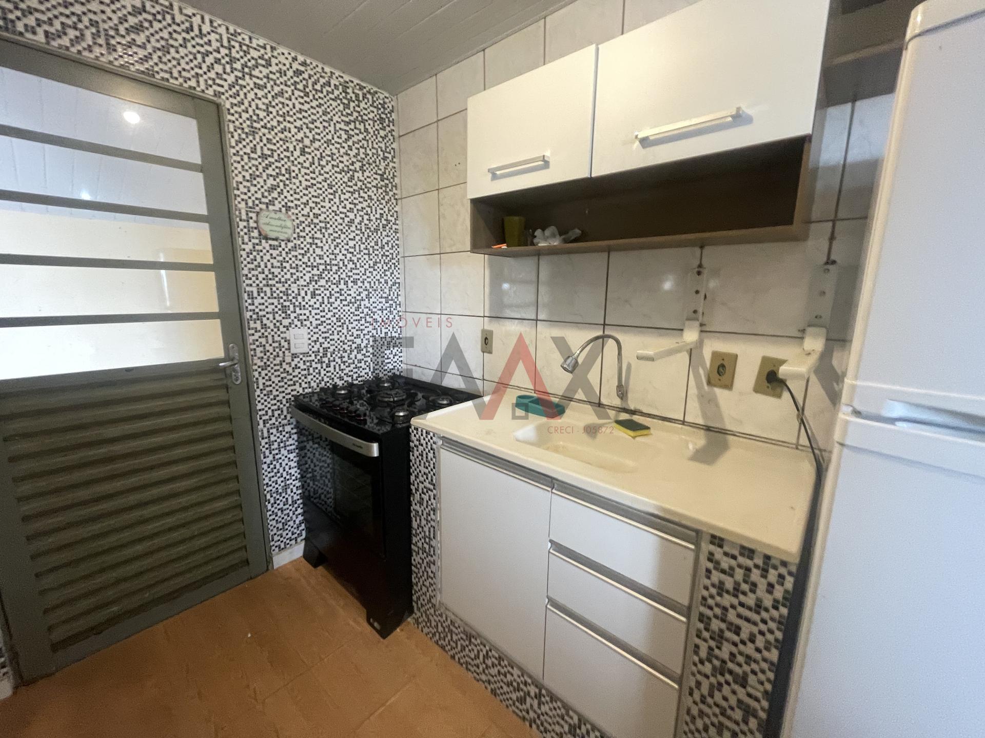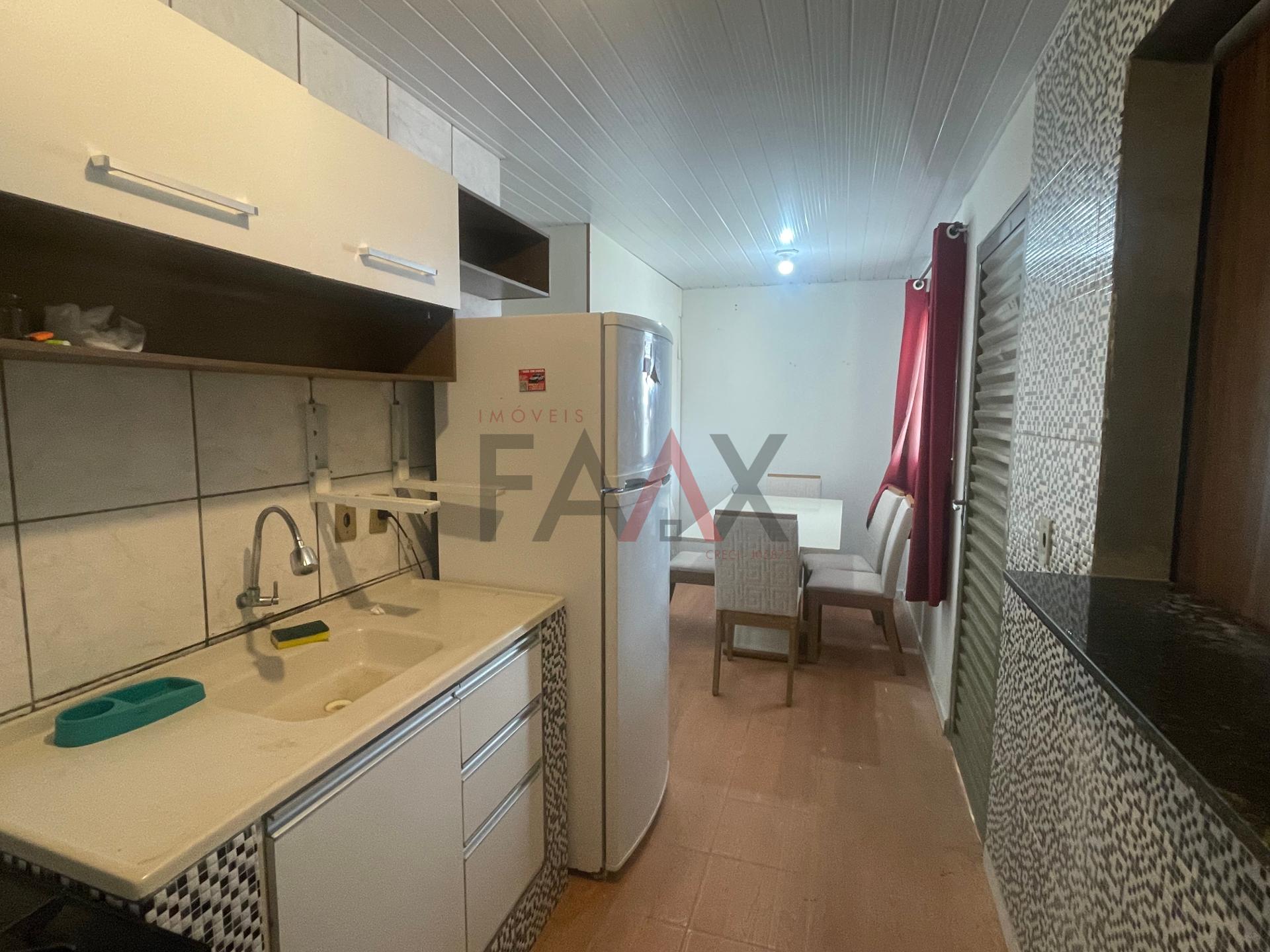 Possui banheiro amplo com box, sala de jantar mobiliada, cozinha mobiliada equipada com geladeira, fogão e guarda-louça, garantindo praticidade desde a mudança.