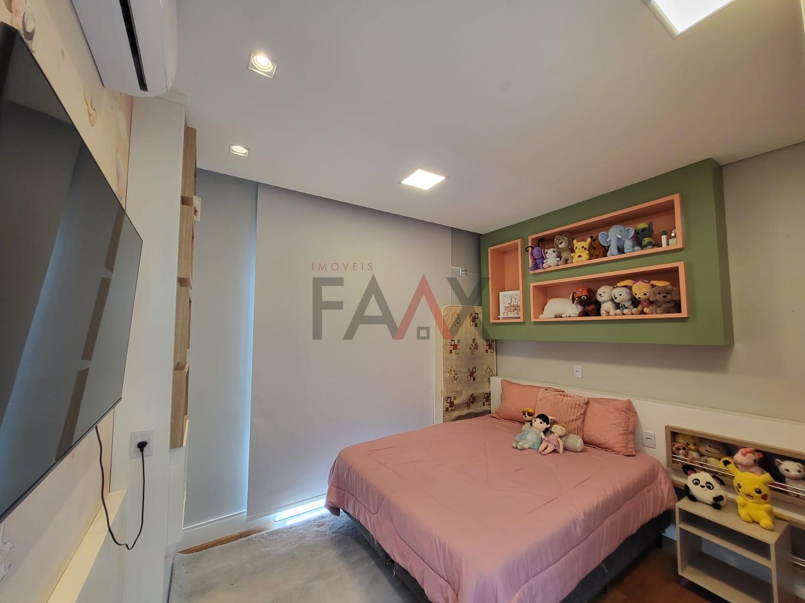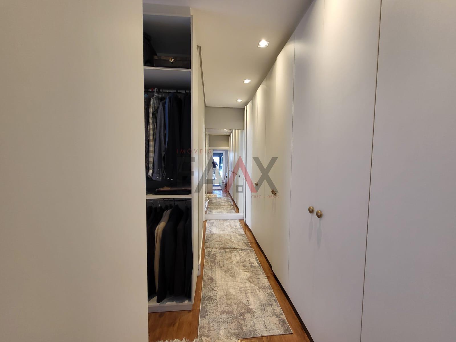 Na área íntima, a suíte master com closet e armários sob medida oferece exclusividade e conforto. Os dois dormitórios adicionais contam com marcenaria planejada e excelente distribuição de espaço, atendidos por um banheiro social contemporâneo.