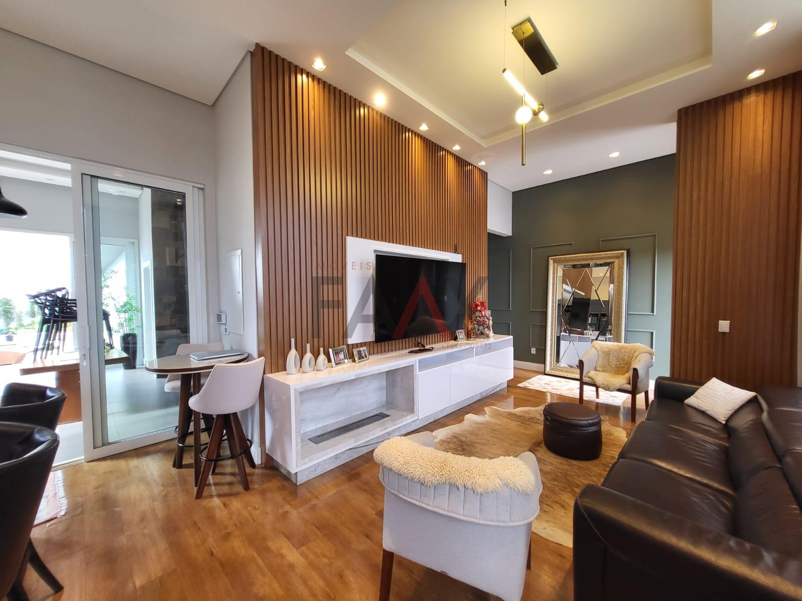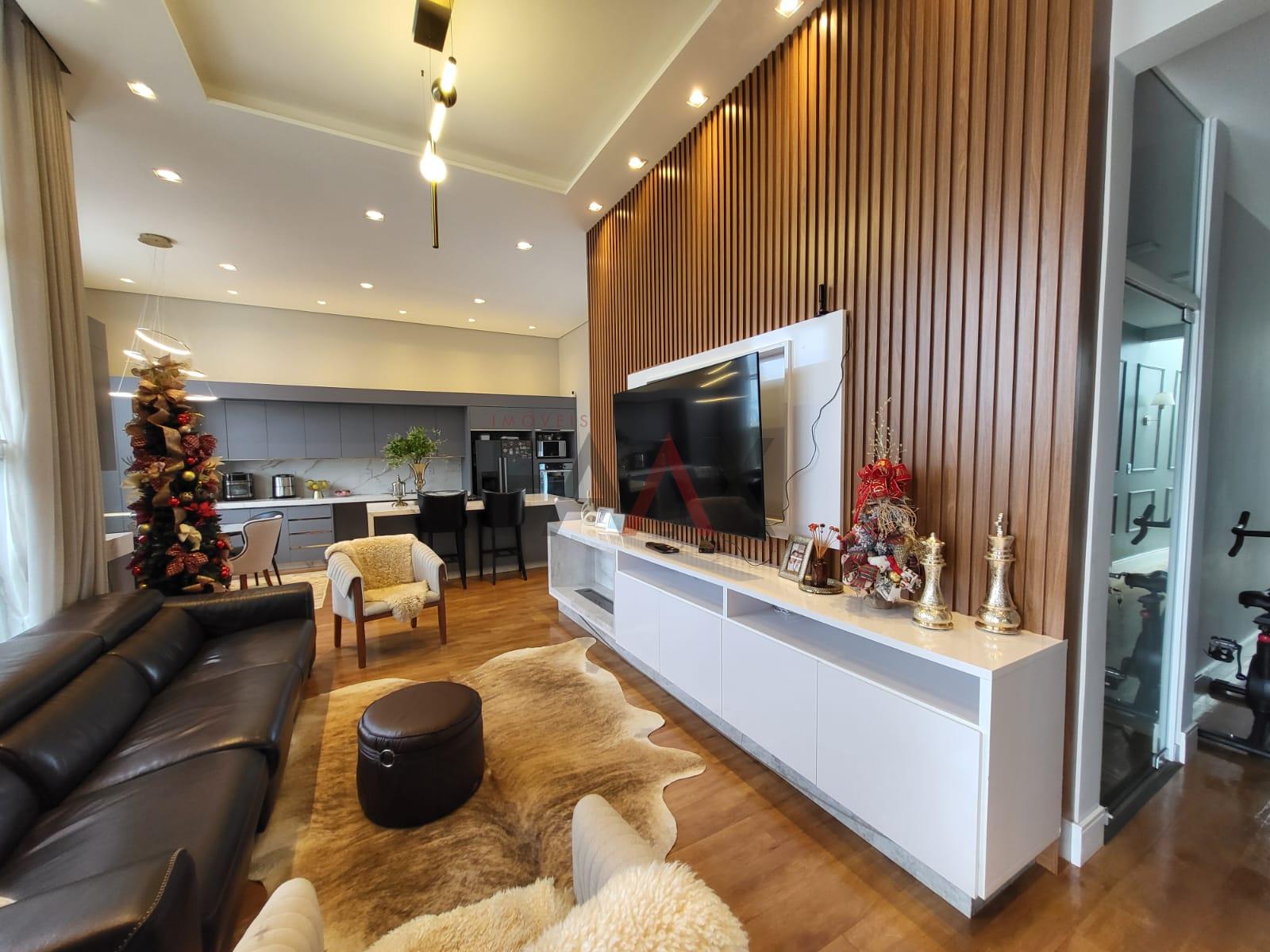 O hall de entrada revela ambientes amplos e elegantemente integrados. A sala de TV com lareira e home planejado cria uma atmosfera intimista e acolhedora, enquanto a sala de estar reforça a imponência do projeto com excelente iluminação natural e acabamentos refinados.