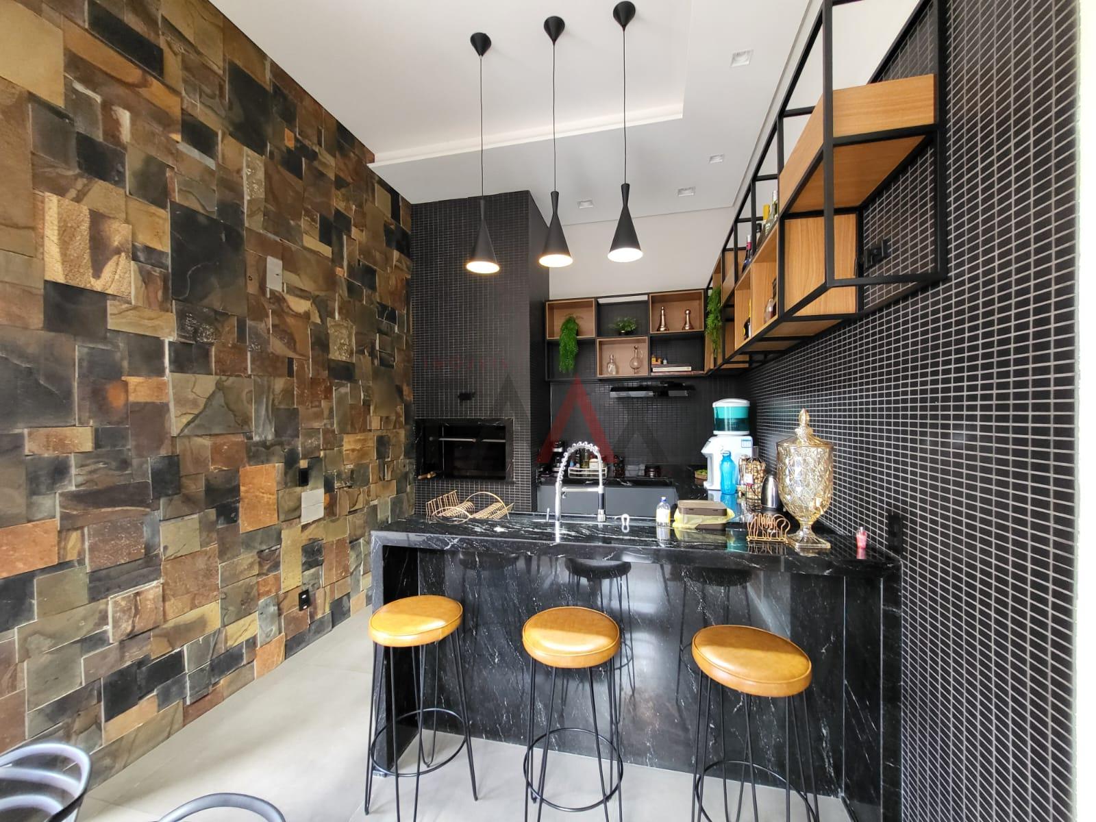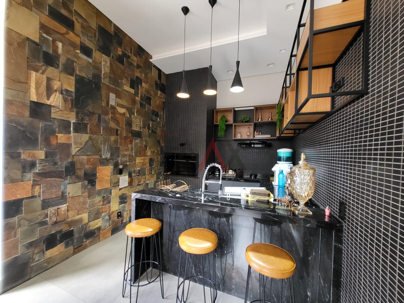 Espaço gourmet completo com churrasqueira e banheiro de apoio, integrado à área externa com piscina aquecida um verdadeiro cenário para receber com elegância e desfrutar momentos memoráveis em total privacidade.